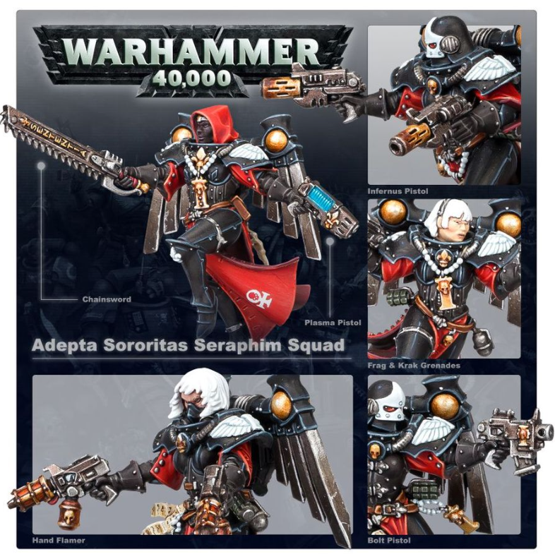 Warhammer 40 000: Adepta Sororitas – Seraphim Squad je plastová stavebnice elitní skokanské jednotky pro Warhammer 40 000. Seraphim bojují s jump packy a dvojicí pistolií, případně s plamenometem nebo inferno pistolí.