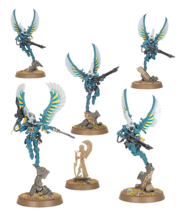 Warhammer 40 000: Aeldari – Swooping Hawks je plastová stavebnice miniatur pro Warhammer 40 000. Set obsahuje 5 agilních okřídlených bojovníků Aeldari určených do role rychlého útočného útvaru.