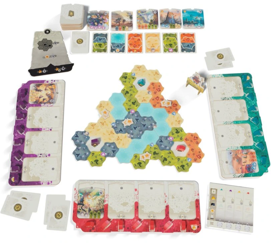 Hráči staví kombinace osad a symbolů s cílem získat co nejvíce bodů.