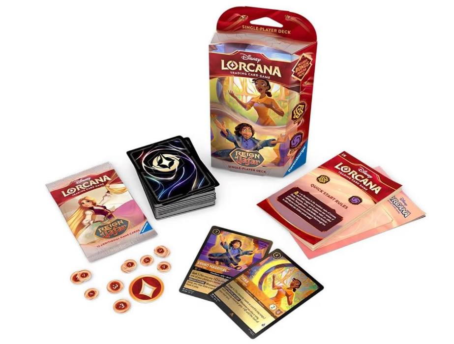 Hotový 60‑kartový balíček v kombinaci barev Amber & Amethyst z edice Reign of Jafar. Součástí je také jeden bonusový booster.