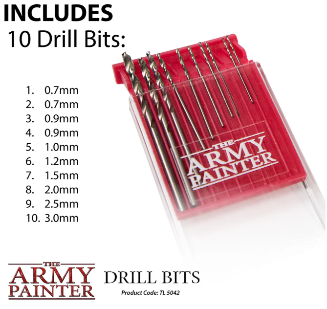 Připrav své miniatury a modely s Army Painter: Drill Bits. Sada obsahuje více kvalitních vrtáků vhodných pro přesné vrtání do plastu, resinů i kovu.