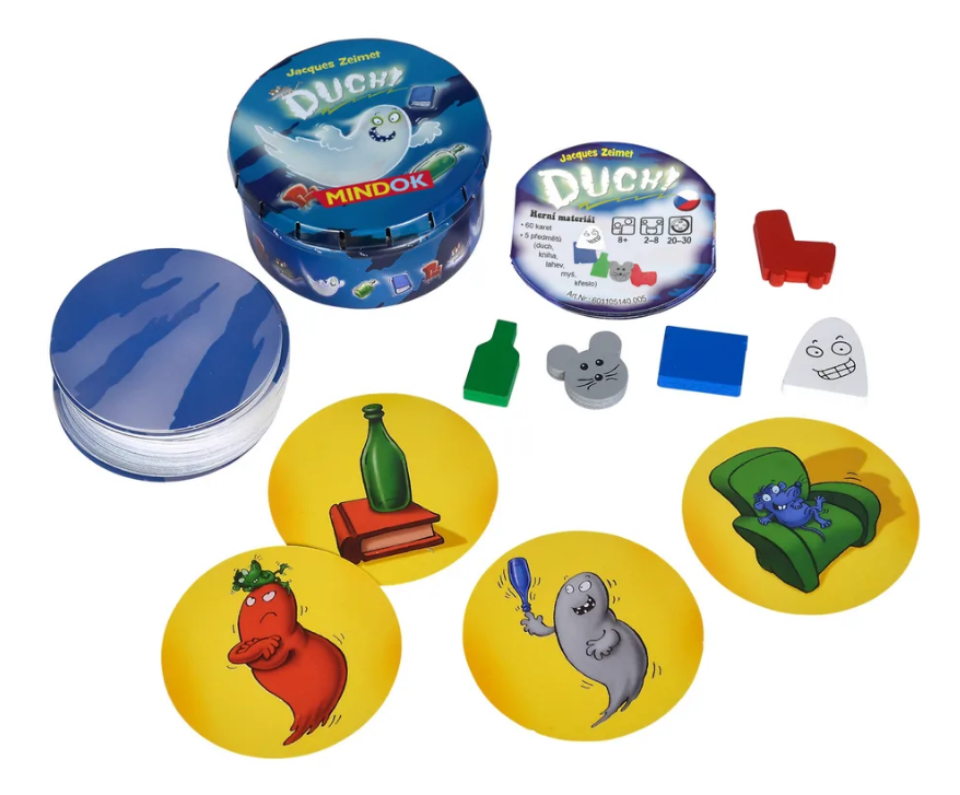 Duch Mini je kompaktní karetní párty hra zaměřená na rychlé postřehové reakce. Hráči musí co nejrychleji správně reagovat na kombinace symbolů a barev a získat správný předmět nebo kartu. Hra nabízí jednoduchá pravidla, svižné tempo a vysokou zábavnost pro skupiny hráčů. Díky malému balení je ideální na cesty nebo rychlé hraní kdekoliv.