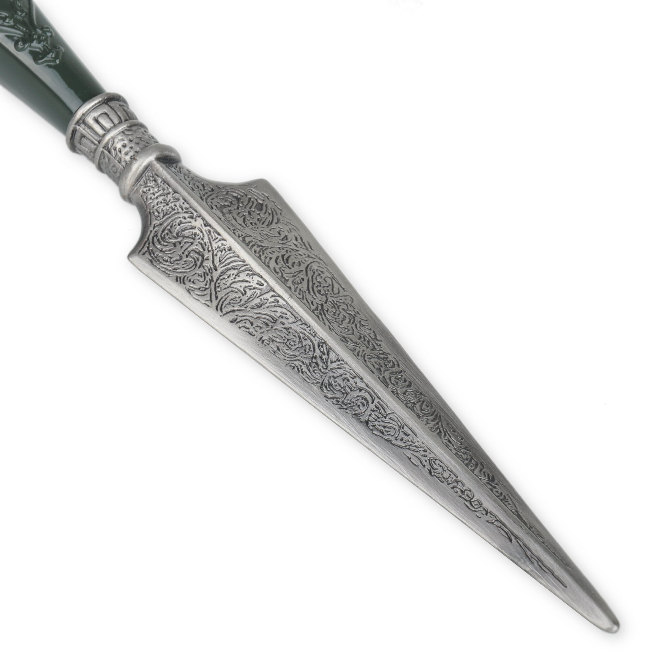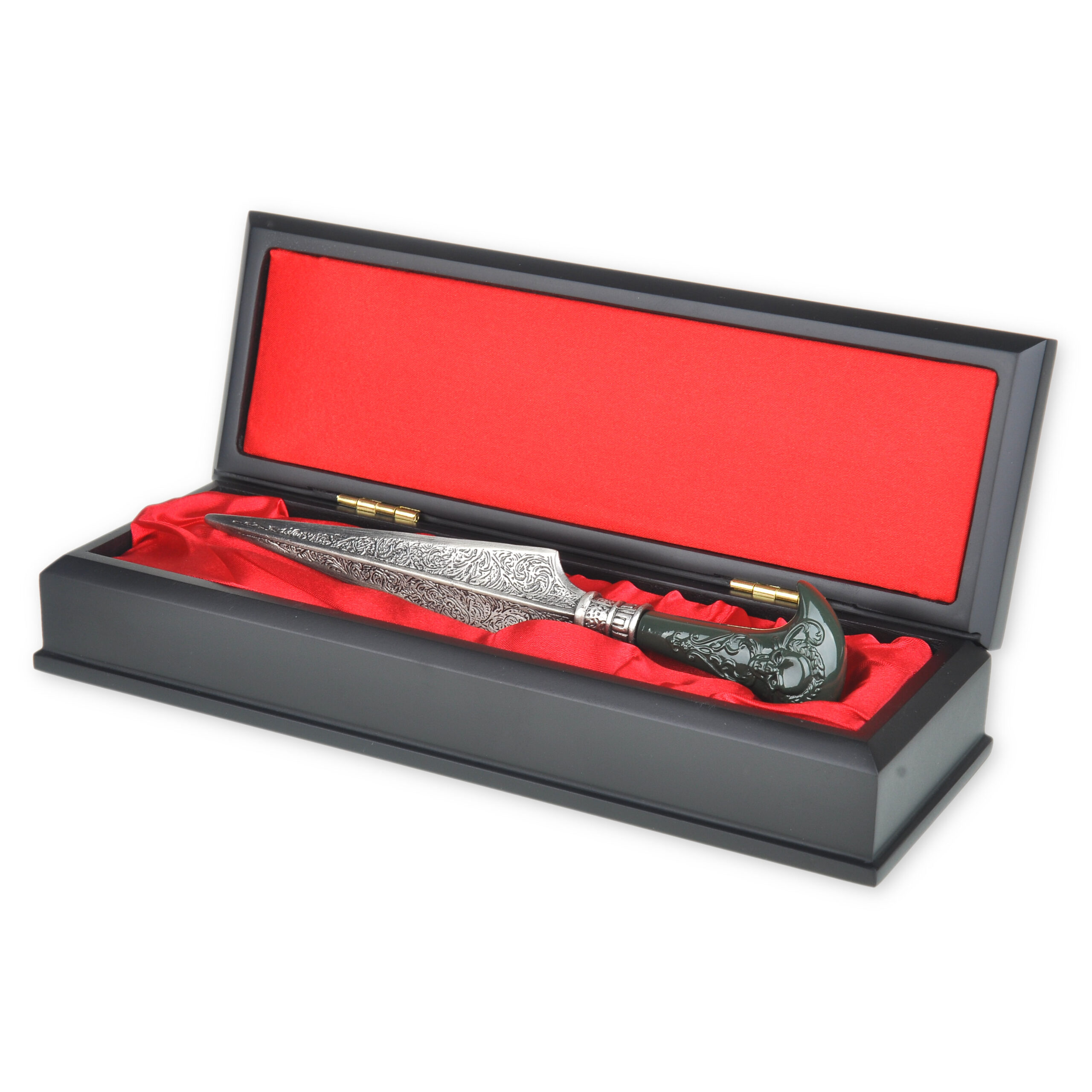 Autentická replika z filmu Harry Potter a relikvie smrti - nechvalně proslulá dýka Bellatrix Lestrangeové vyrobená z litého kovu. Délka repliky je cca 19 cm, součástí je krásná dřevěná krabička (24x5x8 cm velká).
