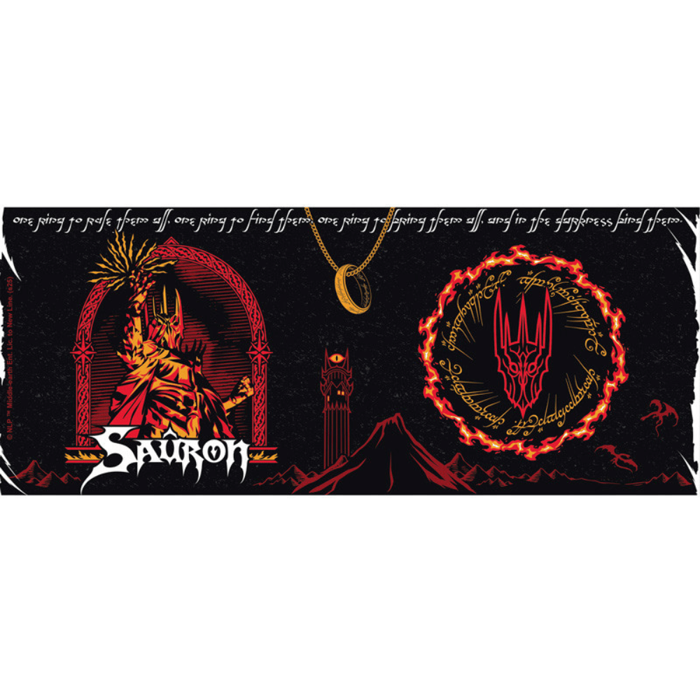 Hrnek Pán prstenů – Sauron je ideální volbou pro každého, kdo se nebojí nahlédnout do temné věže. Dominantní silueta Saurona a tmavý design dodají každému doušku nádech Středozemě pod stínem Mordoru. Vyroben z vysoce kvalitní keramiky s objemem 460 ml, vhodný do myčky i mikrovlnné trouby. Dodáván v dárkové krabičce s okénkem – skvělý dárek pro fanoušky Tolkienova světa.