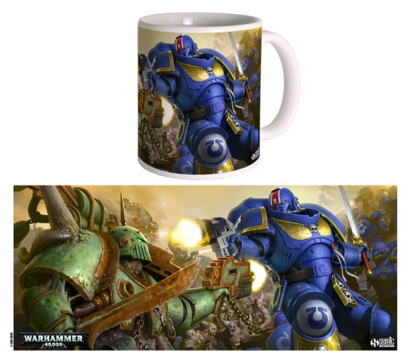 Ponoř se do nelítostného světa 41. milénia při každém napití! Tento oficiálně licencovaný Warhammer 40,000 hrnek zachycuje epickou bitvu mezi Ultramarines a odpornými démony Nurgla. Stylová grafika v dynamickém bojišti z něj dělá perfektní doplněk do sbírky každého fanouška Imperia i Chaosu.