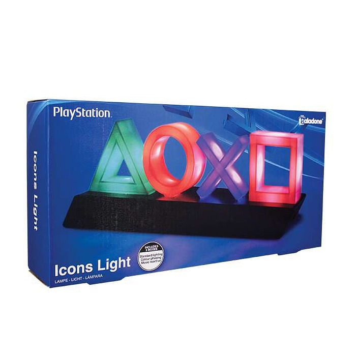 Lampa ve tvaru symbolů z herního ovladače pro konzoli Playstationvytvoří ve vašem herním doupěti jedinečnou atmosféru. Moderně tvarovaná lampa je umístěna na elegantním černém podstavci a nabídne vám tři různé režimy osvětlení - standardní světlo, barevné nasvícení a unikátní reakci světel na zvuky. Skvělý společník do každého hráčského doupěte či ložnice.