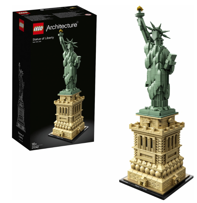 Postavte si detailní model Sochy Svobody, ikonického symbolu svobody. Model obsahuje podstavec s vysoce detailními štíty, sloupovými balkóny a sochu dámy Svobody s pohyblivým pláštěm, sedmiramennou korunou, ikonickou tabulkou a zlatou pochodní.