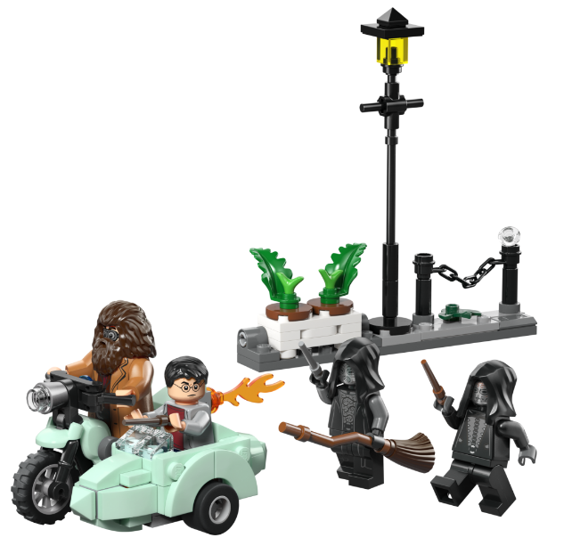 Stavebnice LEGO® Harry Potter™ 76459 přináší scénu Hagrid™ a Harryho útěk ze Zobí ulice.