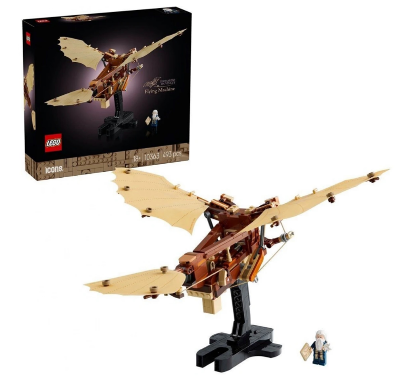 Objev geniální nápad Leonarda da Vinciho s LEGO Icons 10363 – Létající stroj. Set nabízí realistické detaily a mechanické prvky inspirované originálním návrhem.