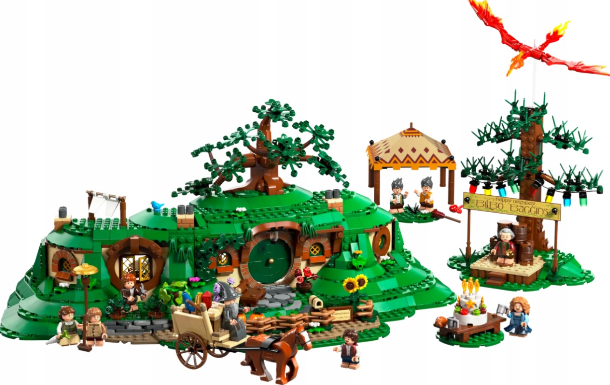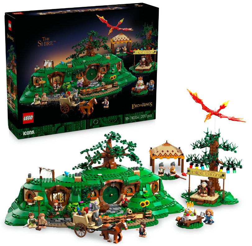 LEGO Icons 10354 Pán prstenů: Kraj představuje detailní stavebnici inspirovanou světem Pána prstenů a slavnou hobití krajinou. Sada nabízí velké dioráma s hobití norou, kulatými dveřmi, zahradou a oslavu narozenin Bilba Pytlíka.