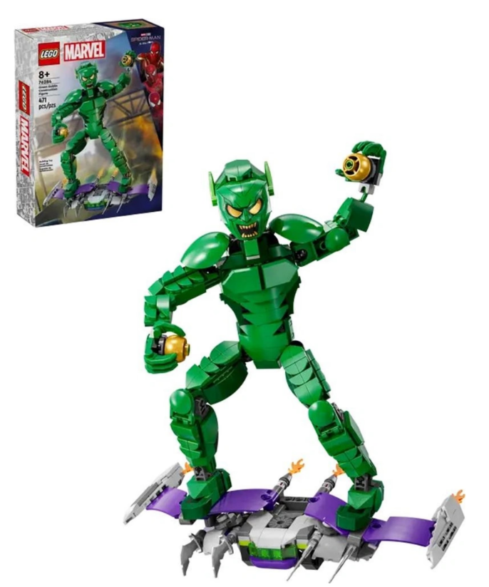 Postavte si detailní model Zeleného Goblina s pohyblivými klouby na ramenou, pažích, bocích a nohách pro dynamické akční pózy. Součástí je glider se dvěma dýňovými děly a úložným prostorem na bomby. Počet dílků: 471. Věková kategorie: od 8 let.