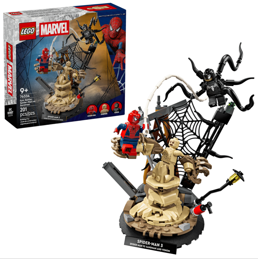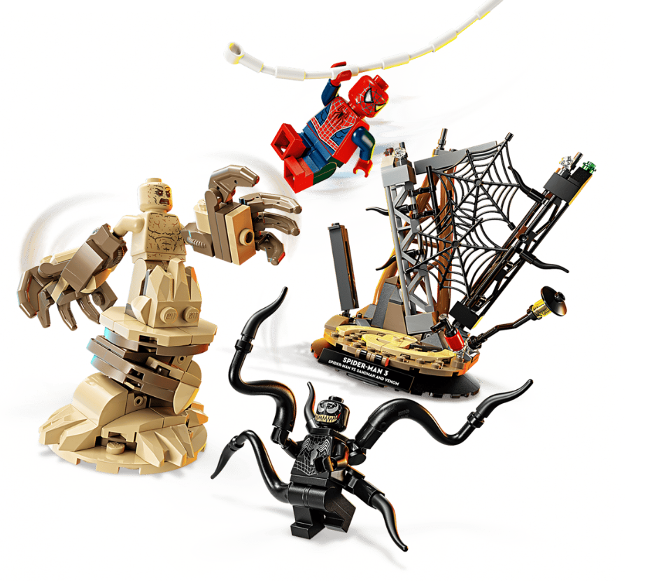 Stavebnice propojuje Spider-Mana, Sandmana a temného Venoma v akční scéně.