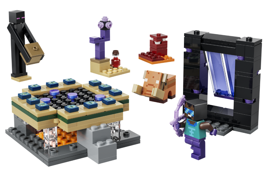 Set obsahuje figury, portály a herní prvky, které umožňují přehrávání scén z Minecraft světa.
