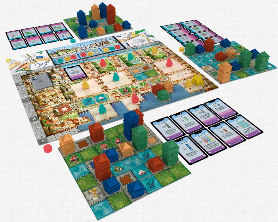 Ve hře Města hráči stavějí moderní čtvrti pomocí výběru budov a zajímavostí.