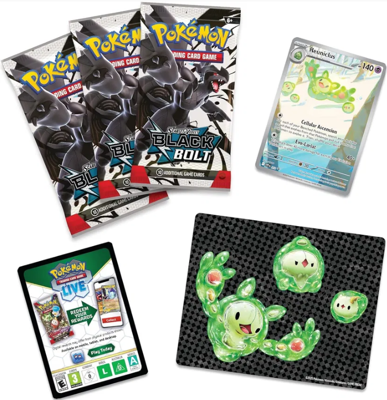Získej promo kartu, evoluční nálepky a 3 boostery Black Bolt.