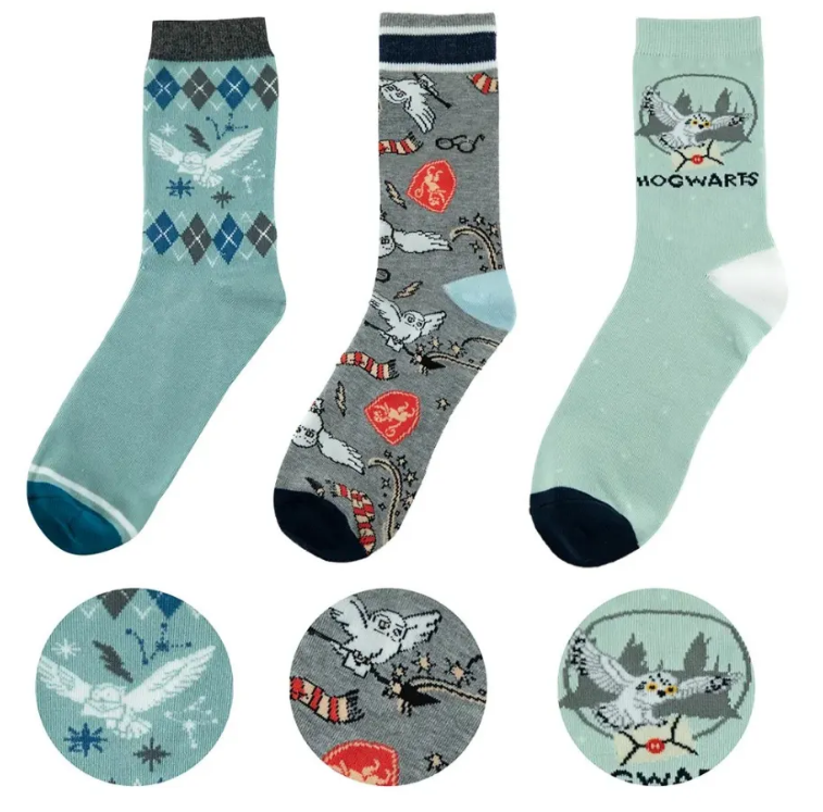Sada ponožek Harry Potter – Hedvika obsahuje tři páry ponožek s motivem Hedviky z kouzelnického světa.
