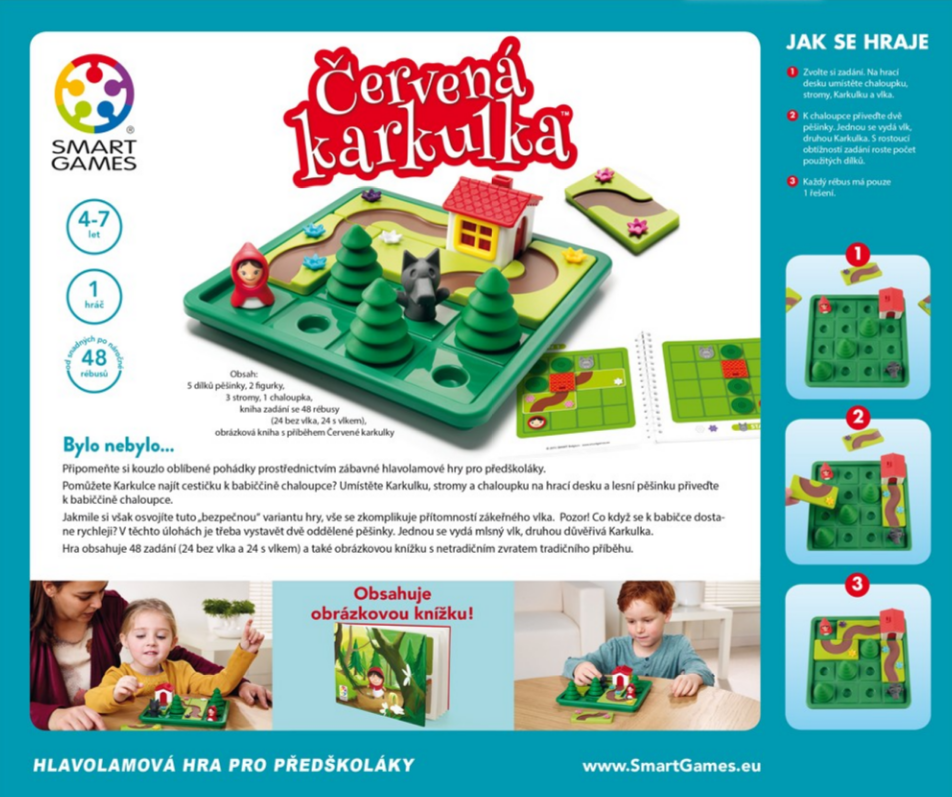 SMART – Červená Karkulka je logická hra pro jednoho hráče, doporučený věk 4+, doba hraní závisí na zvolené obtížnosti.