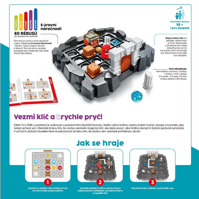 SMART – Útěk z podzemí je logická hlavolamová hra pro jednoho hráče, doporučený věk 7+, doba hraní závisí na obtížnosti úkolu.