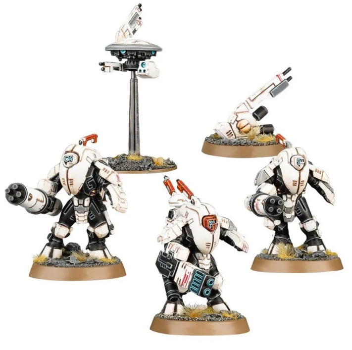• 49 plastových dílů, 3× podstavec Citadel 32 mm pro suití, 1× podstavec Citadel 25 mm pro drona + malá létající základna.
