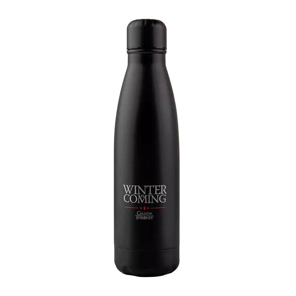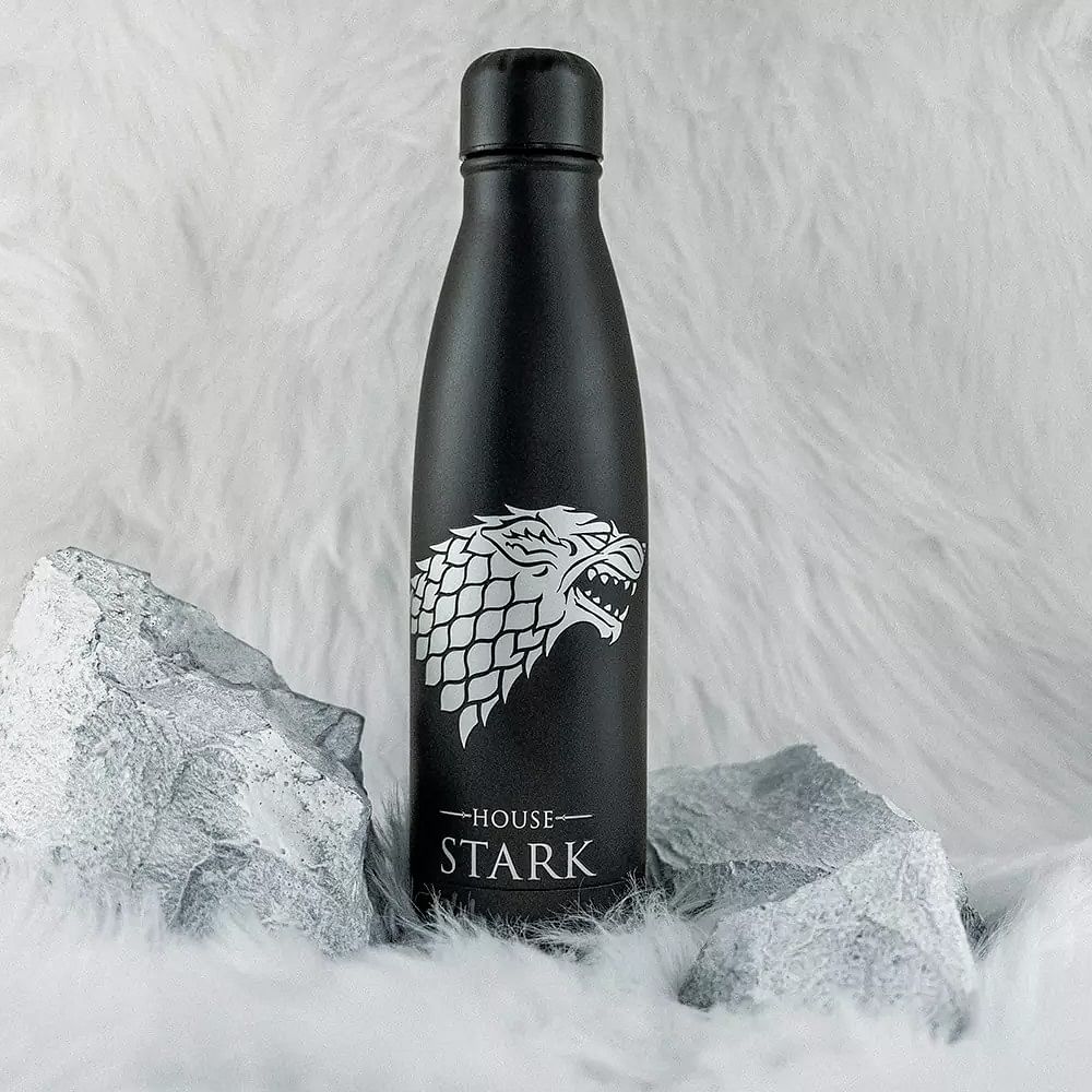 Nerezová láhev na vodu pro fanoušky rodu Starků z Game of Thrones - Hry o trůny vám dopřeje to správné osvěžení! Láhev udrží váš nápoj studený či teplý až 15 hodin. Láhev není vhodná do mikrovlnky ani do myčky nádobí.